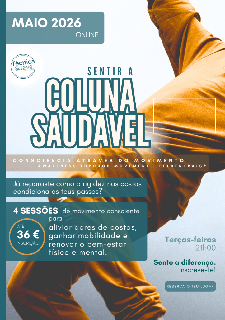 Temas a explorar: reeducação postural; organização; integração funcional; respiração em movimento; movimentos repetitivos; entre outros.